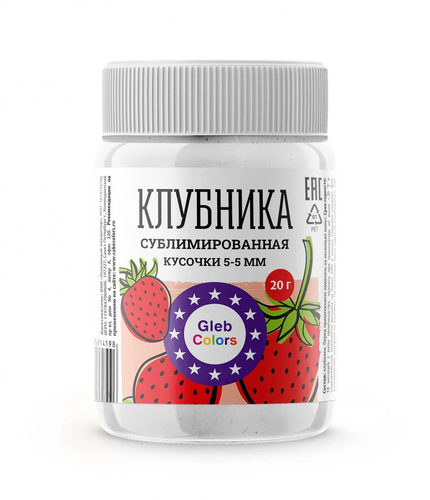 Клубника сублимированная кусочки 5х5 мм Gleb Colors, 20г