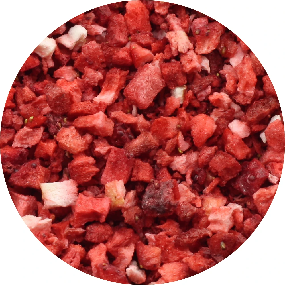 Клубника сублимированная, это ягоды, из которых удалена влага с помощью вакуума, данная технология позволяет сохранить вкус, цвет и 96% питательных веществ, приготовленные по этой технологии ягоды не содержат красителей, ароматизаторов, консервантов и подойдут для правильного питания. В отличие от свежих ягод сублимированные долго хранятся и доступны в любое время. Клубника имеет приятный запах, вкус и яркий цвет, подойдет для добавления в выпечку, крема, начинки, напитки.